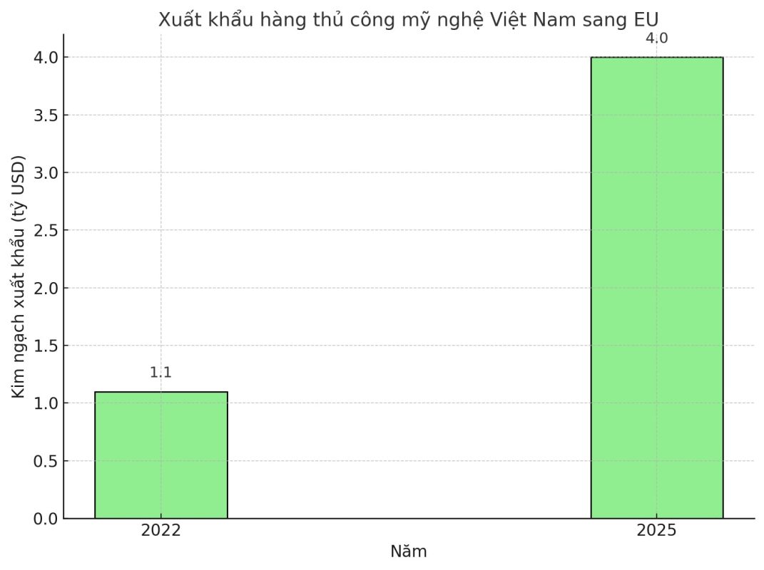 Xu hướng “tiêu dùng xanh” cũng đang bùng nổ, đặc biệt với các sản phẩm từ mây, tre, gỗ trồng có chứng nhận bền vững. Theo ITPC, 73% giá trị hàng trang trí nội thất tại châu Âu được nhập khẩu từ các nước đang phát triển, kim ngạch tăng từ 2,2 tỷ EUR năm 2018 lên 3 tỷ EUR năm 2022. Năm 2022, Việt Nam đã xuất khẩu hơn 1,1 tỷ USD hàng thủ công mỹ nghệ sang EU, đặt mục tiêu đạt 4 tỷ USD vào 2025.